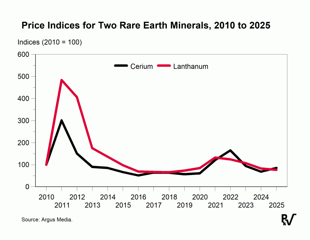 China's maintenance of low rare earth prices since 2012 (see graph) helps it retain customers and discourage competition. See "Our View" on this page for more on this.