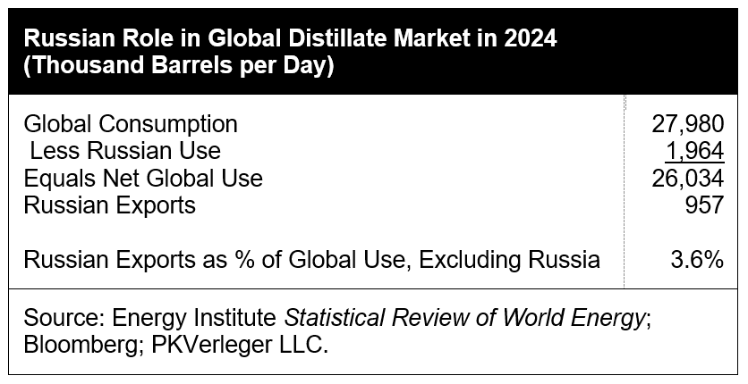 Ukraine's Threat to Diesel Prices (September 29, 2025) -- A loss of a significant portion of Russian supplies could push distillate prices up by 40%.